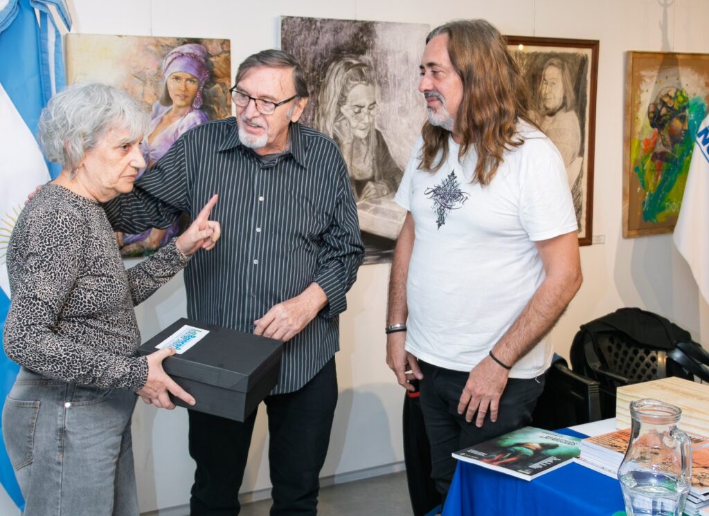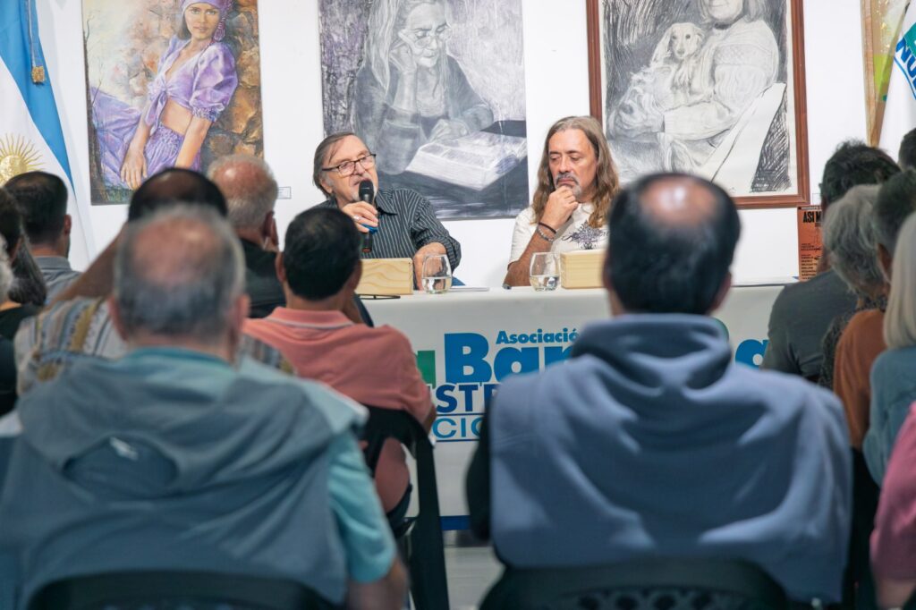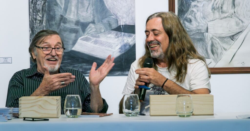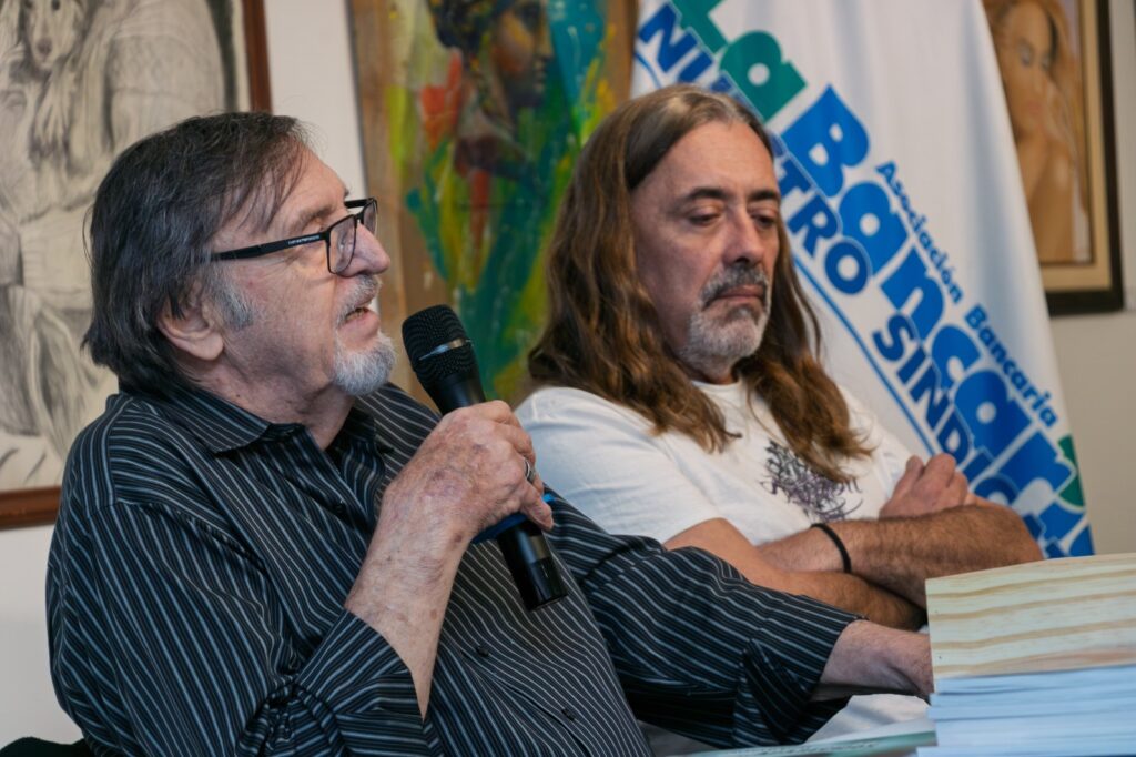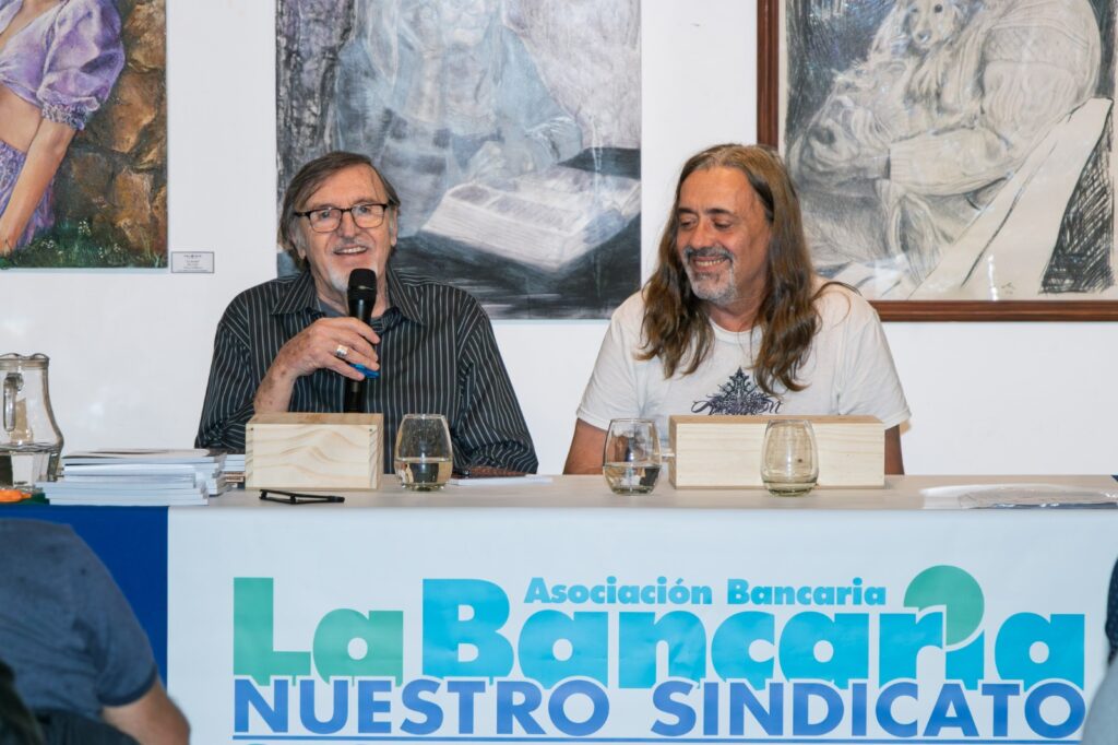 Durante el encuentro, Bellagamba y el dibujante Sergio Ibáñez compartieron con los presentes el proceso de investigación y creación de esta pieza, que rescata las trayectorias de figuras emblemáticas como Paco Urondo, Mauricio López y Marie Anne Erize.