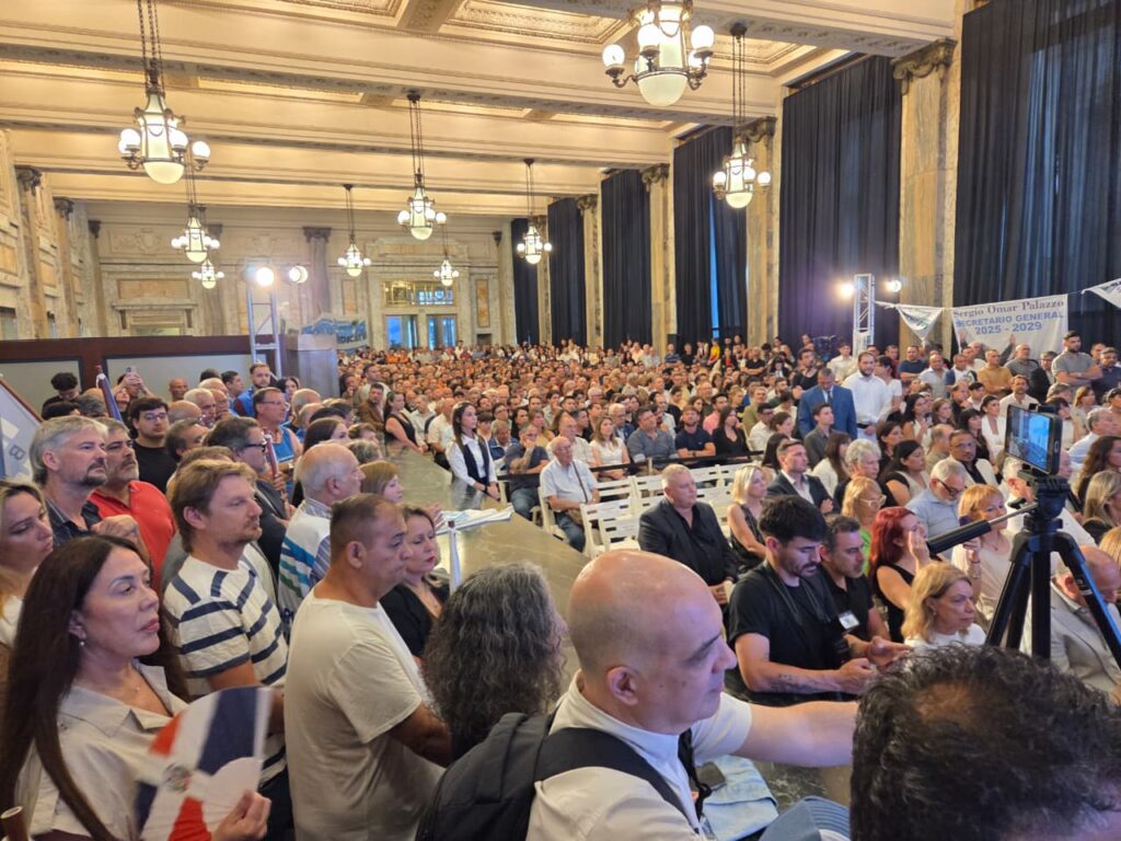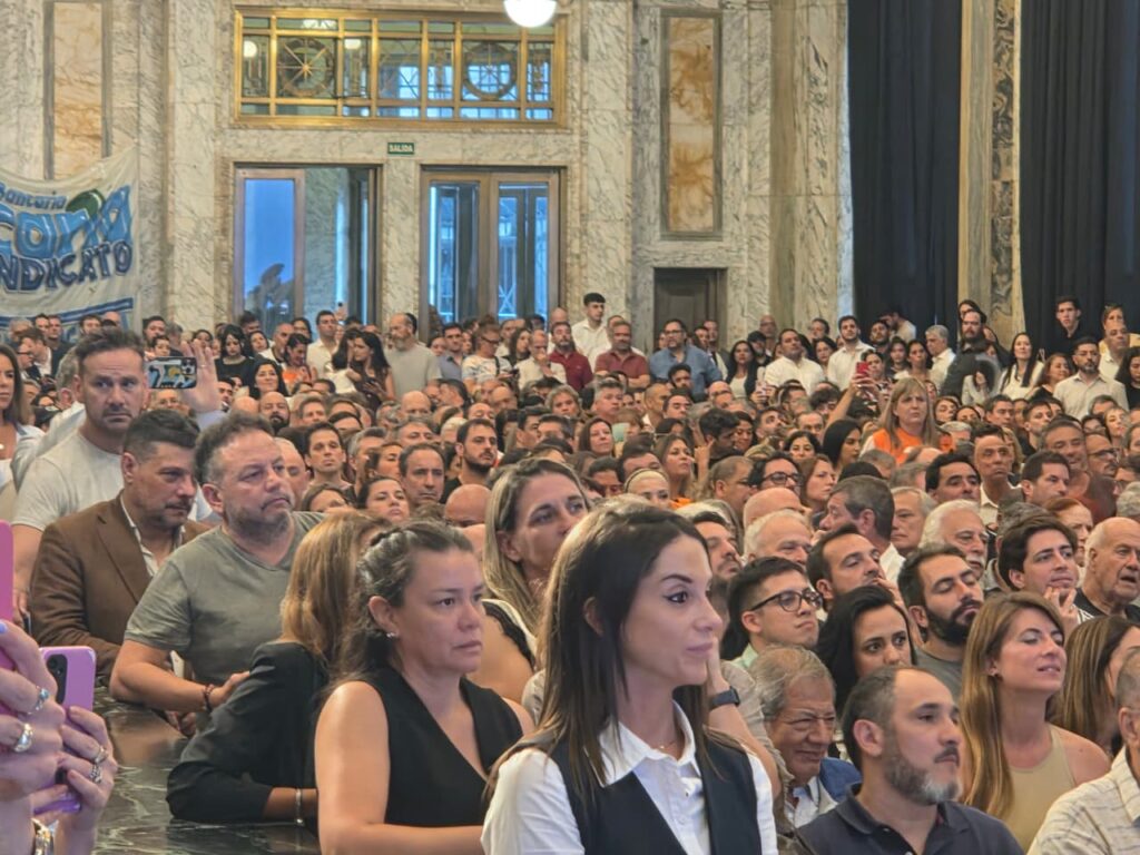 En el histórico edificio del ex Banco de Italia, La Bancaria proclamó al nuevo Secretariado Nacional para el período 2025-2029, en una ceremonia cargada de historia, compromiso y proyección gremial. Allí, una vez más, Sergio Palazzo fue proclamado como Secretario General Nacional, reafirmando su liderazgo indiscutido en la defensa de los derechos de los trabajadores y trabajadoras bancarias.